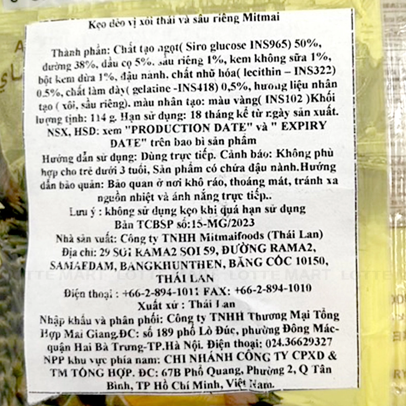 Kẹo Xôi Thái Và Sầu Riêng Mitmai Gói 114G