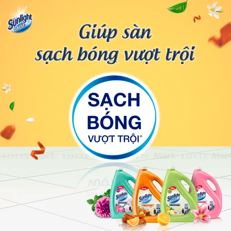Hướng dẫn sử dụng: Hoà 1 nắp đầy Sunlight lau sàn vào nửa xô nước (loại xô 5L). Nhúng ướt giẻ rồi lau sạch các vết bẩn. Không lau lại bằng nước.