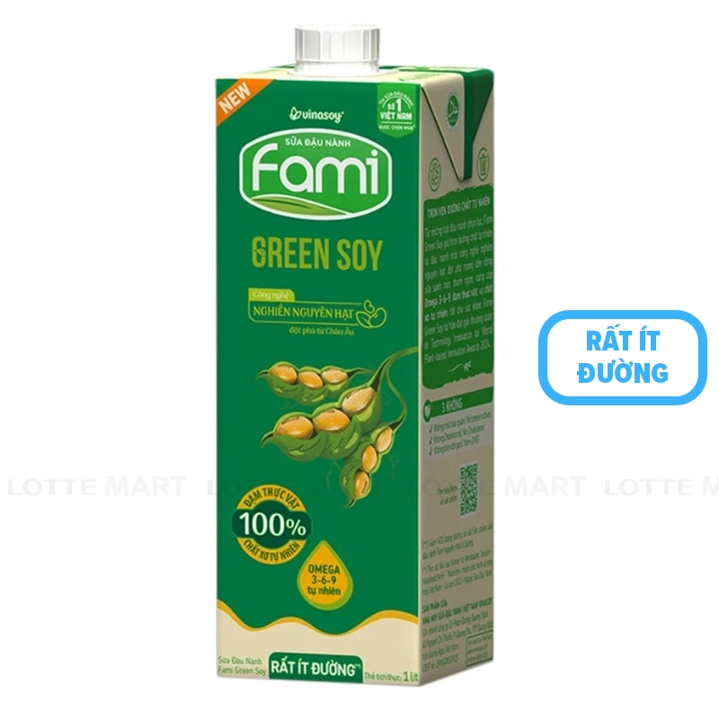 - Từ những hạt đậu nành chọn lọc, Fami Green Soy giữ trọn dưỡng chất tự nhiên từ đậu nành như công nghệ nghiền nguyên hạt đột phá mang đến dòng sữa sánh mịn, thơm ngon, cung cấp Omega 3-6-9, đạm thực vật, và chất xơ tự nhiên, tốt cho sức khỏe.
