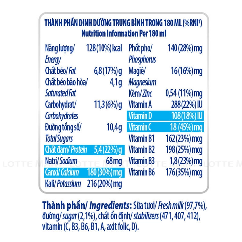 - Sản phẩm được giảm 45% lượng đường, với hương vị thơm ngon, dễ uống, lý tưởng cho những ai muốn giảm lượng đường trong chế độ ăn uống mà vẫn tận hưởng được vị ngọt nhẹ nhàng và hương vị tự nhiên của sữa.