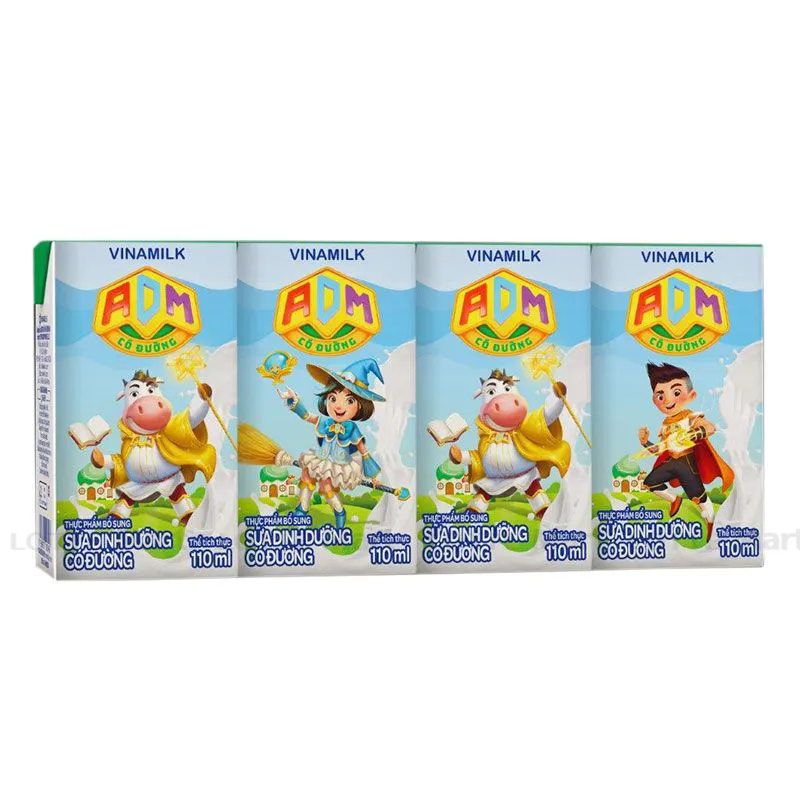 Sữa Tươi Tiệt Trùng Vinamilk ADM Có Đường Lốc 4 Hộp 110ML