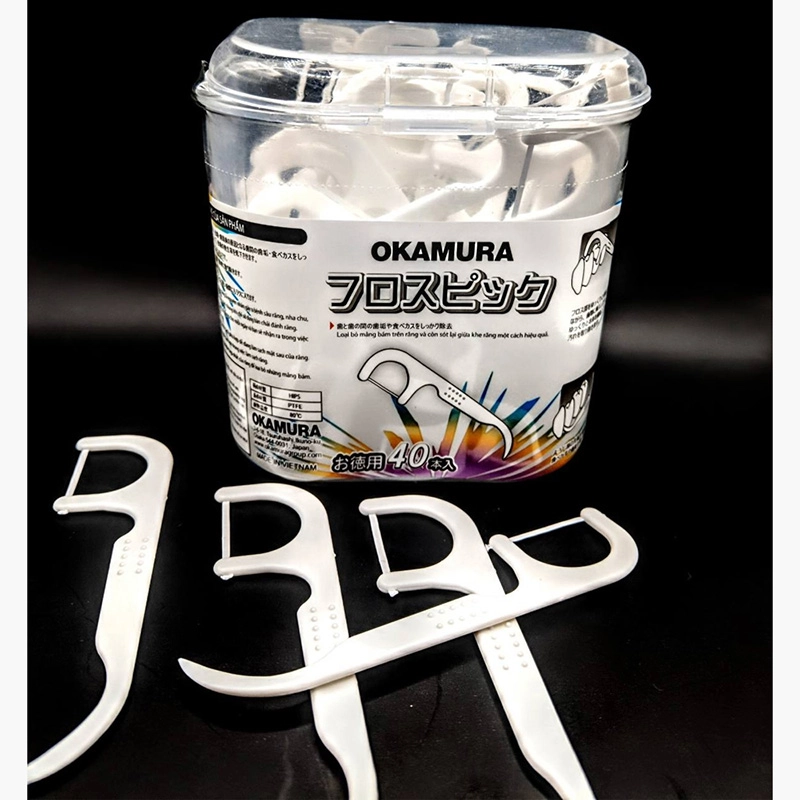 Tăm Chỉ Kẽ Răng Nha Khoa Okamura Hộp 40 Cây