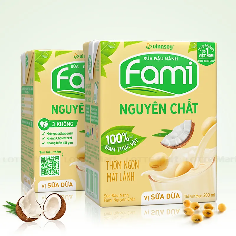 Sữa đậu nành chứa nhiều protein, chất xơ, vitamin và chất khoáng có lợi cho sức khỏe. Sản phẩm bổ sung và giúp tăng cường sức đề kháng, hệ cơ xương và làm đẹp da. Sữa đậu nành Fami sánh mịn, thơm ngon, cung cấp dưỡng chất thiết yếu cho gia đình bạn sức khỏe và niềm vui thưởng thức mỗi ngày.