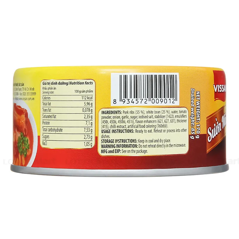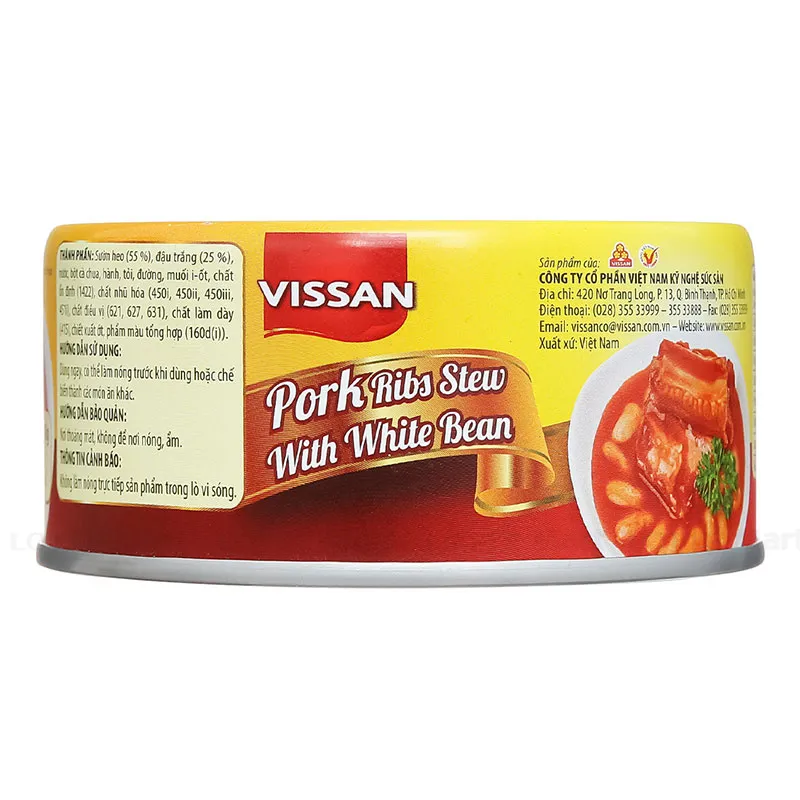 - Sườn Nấu Đậu Vissan thơm đậm vị heo hộp cùng với gia vị sấy ngào ngạt. Thịt heo chất lượng, nguồn cung cấp rõ ràng, yên tâm cho khách hàng. Heo hộp Vissan là món ăn tiện lợi cho những ai bận rộn và tiết kiệm thời gian.