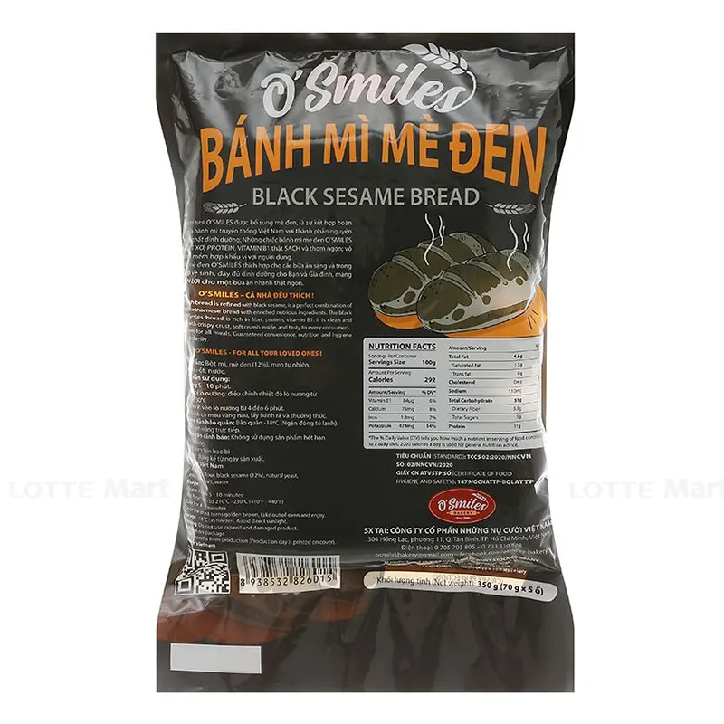 - Bánh Mì Mè Đen O'smilesđược đóng gói tiện dụng cho bạn sử dụng cũng như bảo quản.