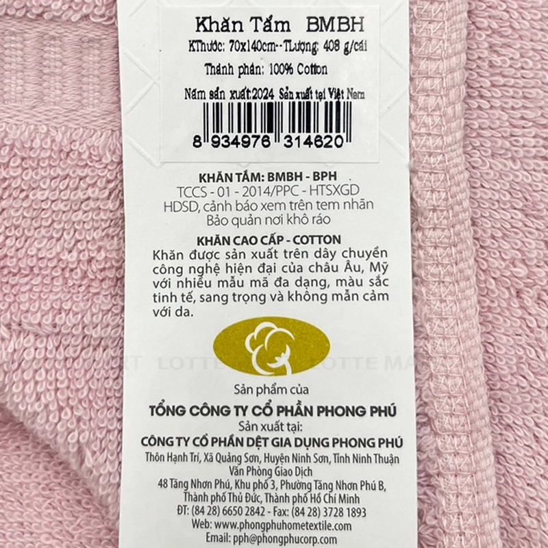 Khăn Tắm BMBH 70x140cm 408G (Giao màu ngẫu nhiên)