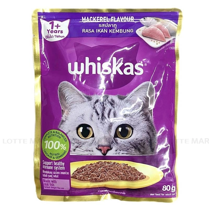 Thức ăn cho mèo lớn Whiskas vị cá thu được thiết kế đặc biệt dinh dưỡng cân bằng và hoàn chỉnh cho mèo trên 1 năm tuổi. Giàu Omega3 và 6, chất béo và kẽm cho lông bóng mượt. Vitamin A và Taurin cho đôi mắt sáng tinh anh. Protein từ cá thật, bao gồm chất béo, vitamins và khoáng chất cho mèo luôn ở thể trạng tốt nhất và vui tươi. Chứa chất chống Oxy hóa (Vitamin E và selenium ) cho hệ miễn dịch khỏe mạnh.