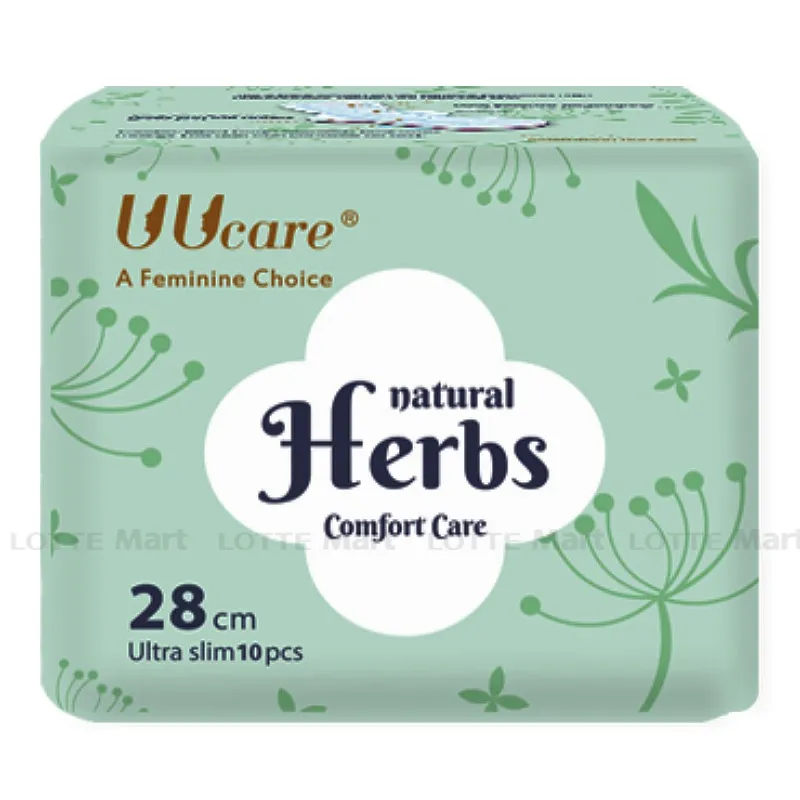 Băng Vệ Sinh UUcare Natural Herb Kháng Khuẩn Thảo Dược Ban Ngày Có Cánh 28cm Gói 10 Miếng là băng vệ sinh với tinh chất thảo dược Bạch chỉ và Diên hồ sách kết hợp cùng công nghệ giải phóng thảo dược chậm giúp các triệu chứng đau nhức khó chịu trong những ngày "đèn đỏ". Bề mặt băng vệ sinh được thiết kế 100% Cotton thân thiện với mọi làn da kể cả làn da nhạy cảm nhất thuộc thương hiệu UUcare đến từ Singapore.