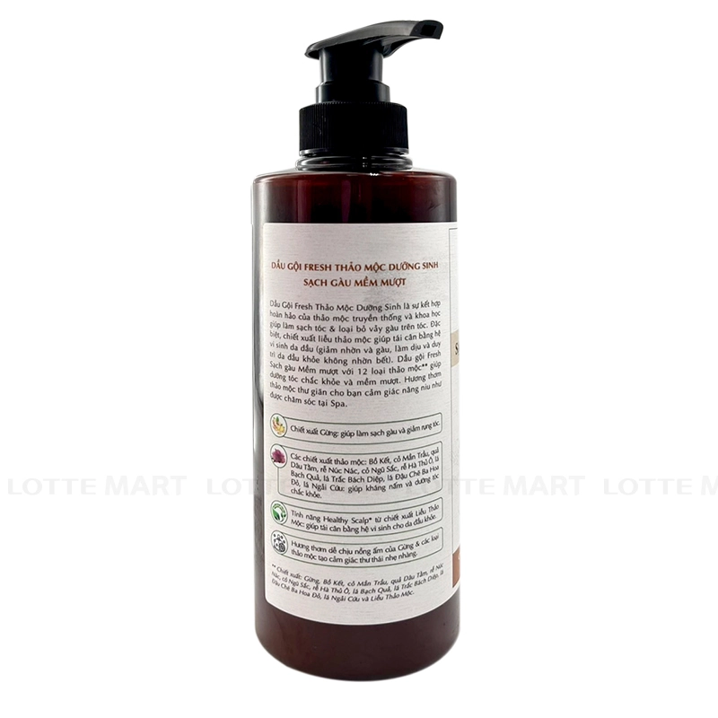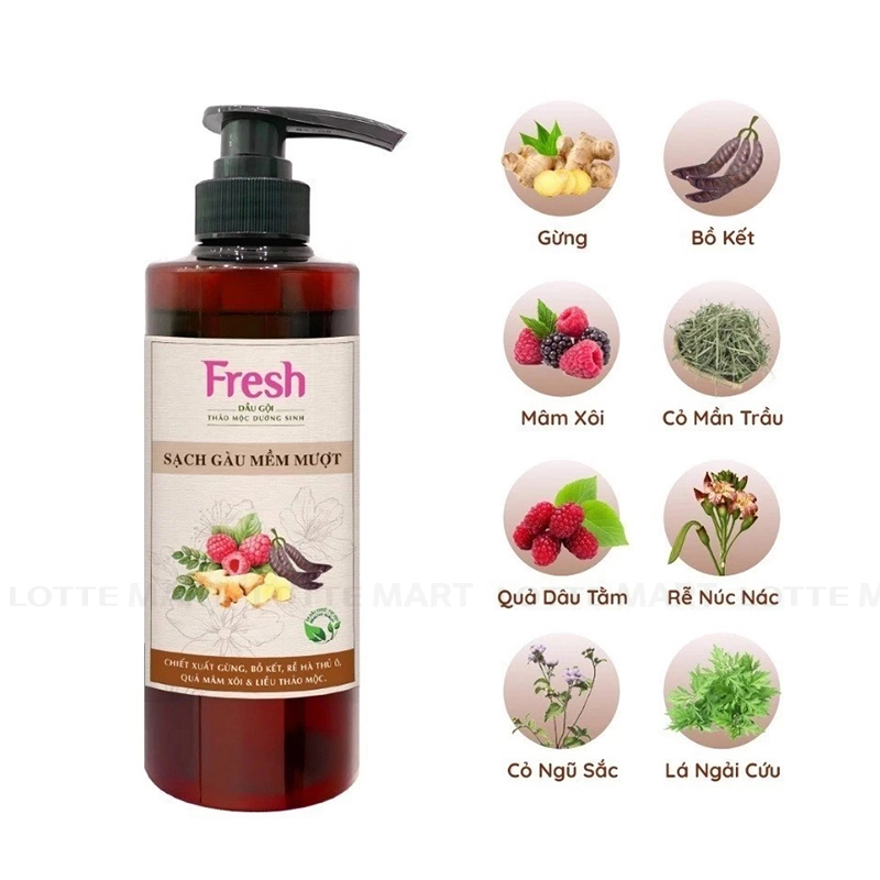 - Dầu Gội Fresh Thảo Mộc Sạch Gàu và Mềm Mượt là sản phẩm dầu gội với các thành phần thiên nhiên cùng hương thơm thảo mộc tinh tế, dễ chịu, manh lại mái tóc chắc khỏe, sạch gàu và mềm mượt.