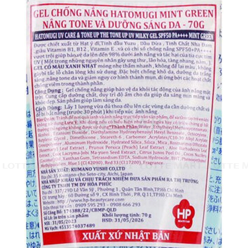 Kem Chống Nắng Hatomugi Nâng Tông Màu Xanh Bạc Hà Tuýp 70G