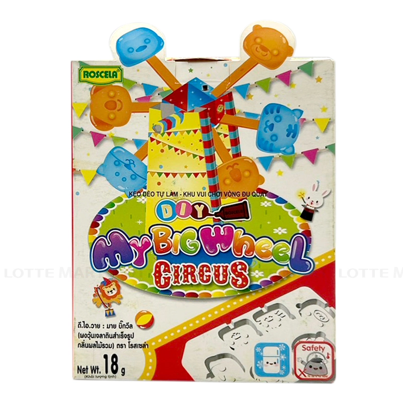 Kẹo Dẻo Tự Làm Khu Vui Chơi Vòng Đu Quay Hộp 18G - Đón không khí lễ hội ở khu vui chơi vòng đu quay My Big Wheel Circus cùng với những người bạn kẹo dẻo hình thú. Nhập vai tổ chức lễ hội vòng đu quay, quay tròn các bạn kẹo hình thú trên vòng đu quay do chính mình lắp ráp như được trải nghiệm niềm vui ở lễ hội hóa trang trong khu vui chơi và đoàn xiếc.