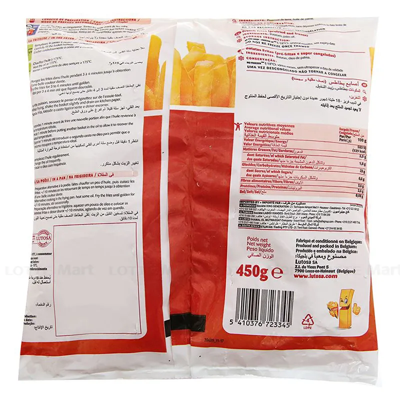 - Khoai Tây Đông Lạnh Sợi Lớn Lutosa Gói 450g là sản phẩm đông lạnh tiện dụng cho mọi bữa ăn gia đình. Sản phẩm được chế biến từ khoai tây tươi ngon được chiên trong dầu thực vật chất lượng tốt đã qua kiểm định chất lượng nghiêm ngặt.