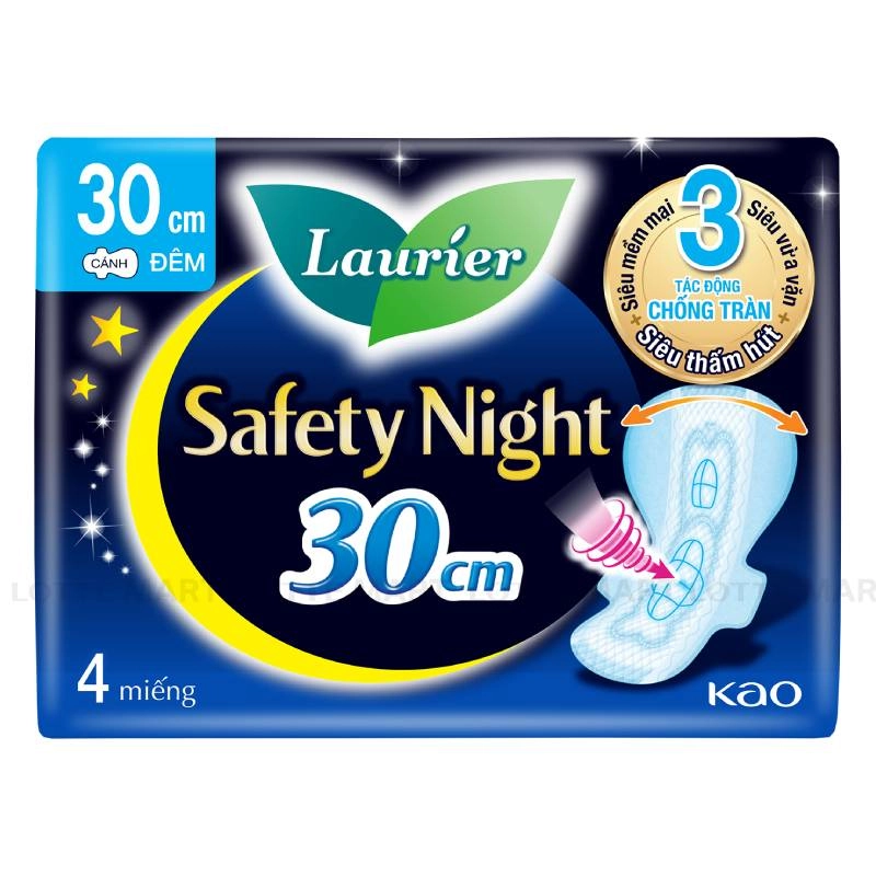 Băng Vệ Sinh Ban Đêm Laurier Siêu Chống Tràn Có Cánh 30cm Gói 4 Miếng