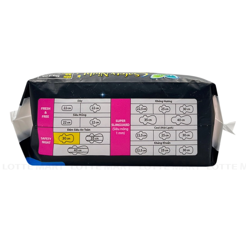 Độ dài vượt trội 30cm - Dành cho ngày vừa và nhiều vào ban đêm. Cánh chống tràn phía sau rộng 16cm giúp chống tràn hiệu quả.