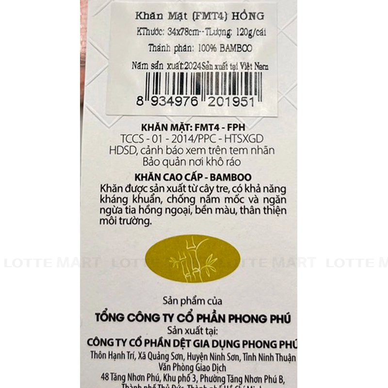 Khăn Mặt Bamboo Mollis FMT4 Màu Hồng 34x78cm