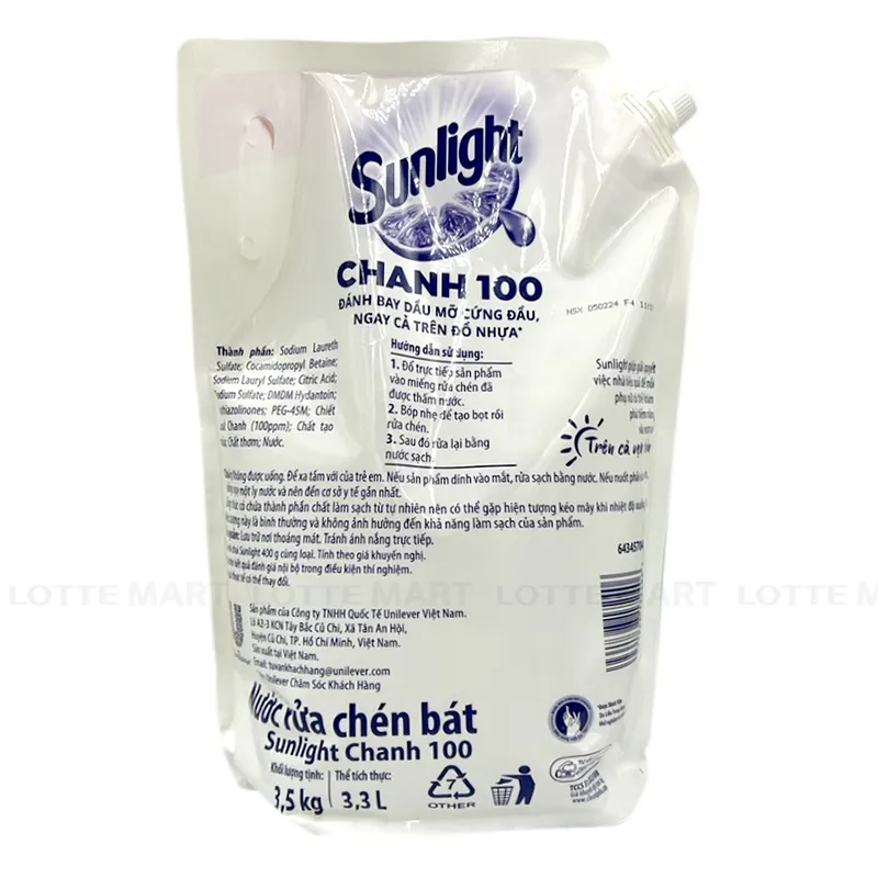 - Nước Rửa Chén Sunlight Chanh 100, với công nghệ xả bọt nhanh mang lại khả năng đánh bay dầu mỡ hiệu quả hơn, không bám bọt.