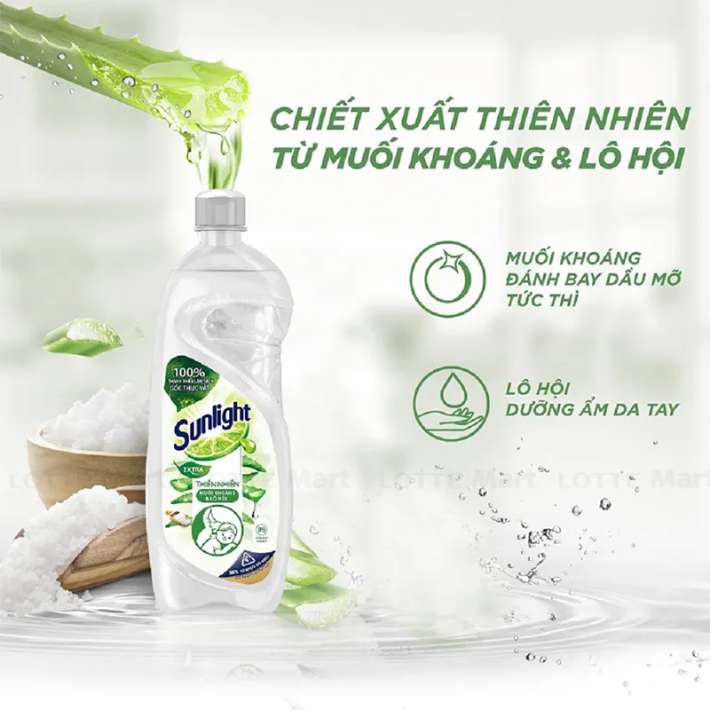 Nước Rửa Chén Sunlight Thiên Nhiên Chiết Xuất Muối Khoáng và Lô Hội Chai 750G
