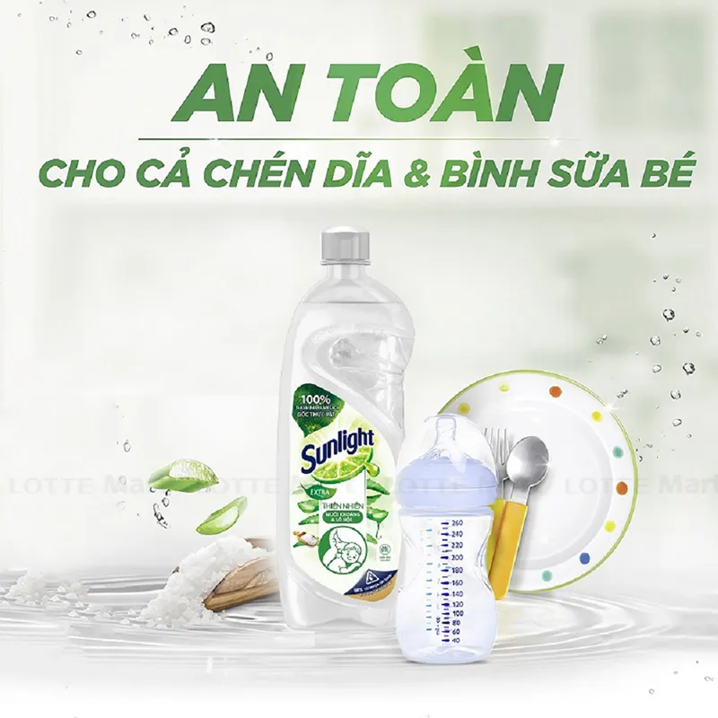 Sunlight ra mắt Nước Rửa Chén Sunlight Thiên Nhiên Lô Hội 100% gốc thực vật, với 100% thành phần làm sạch gốc thực vật - An toàn cho chén dĩa trẻ em cùng công thức phân hủy sinh học đến 99%, bao bì nhựa tái sinh thân thiên với môi trường.