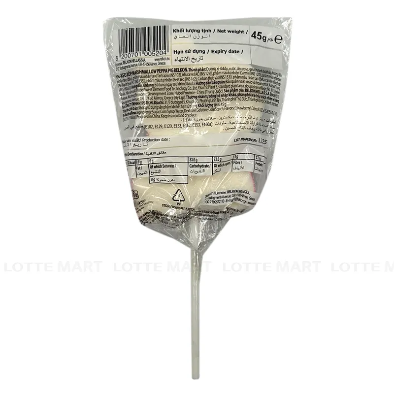 - Kẹo xốp marshmallow Relkon Peppa Pig hương dâu que với kết cấu mềm dẻo, thơm lừng hương dâu, rất được các bé yêu thích.