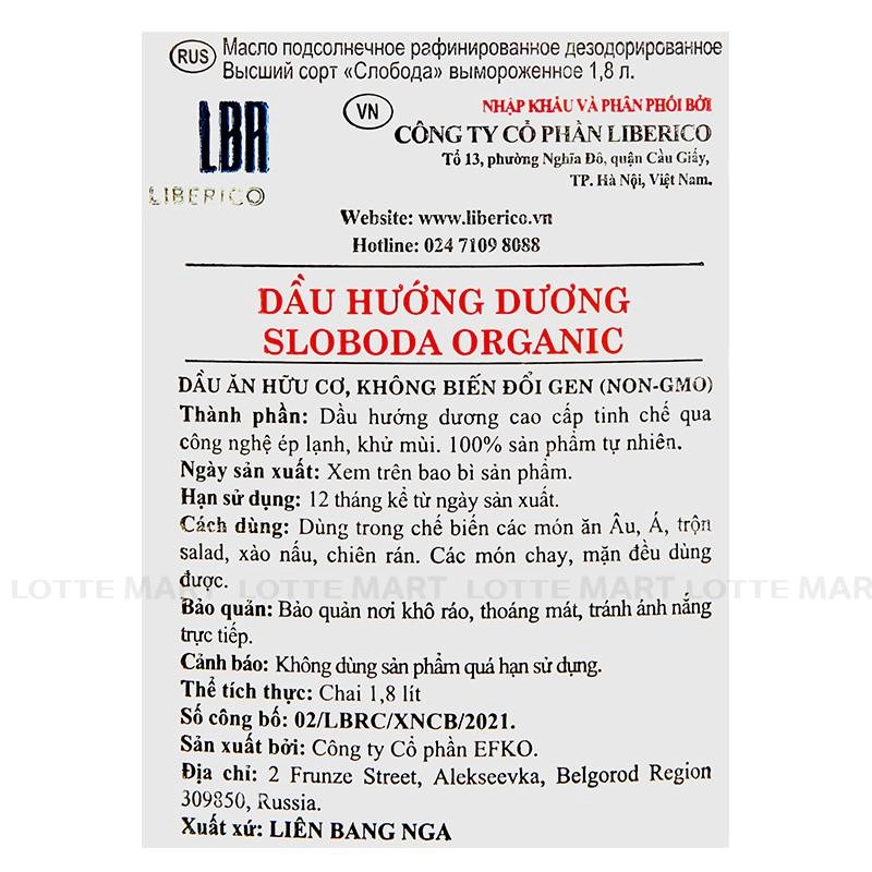 - Dầu Ăn Hướng Dương Hữu Cơ Sloboda được chiết xuất từ 100% hạt hướng dương không biến đổi gen, chứa nhiều Omega 9 và vitamin A, E, chất béo, carbohydrate tốt cho sức khỏe. Đây là sản phẩm dầu ăn nổi tiếng tại Nga và được sử dụng phổ biến tại nhiều nước trên thế giới.