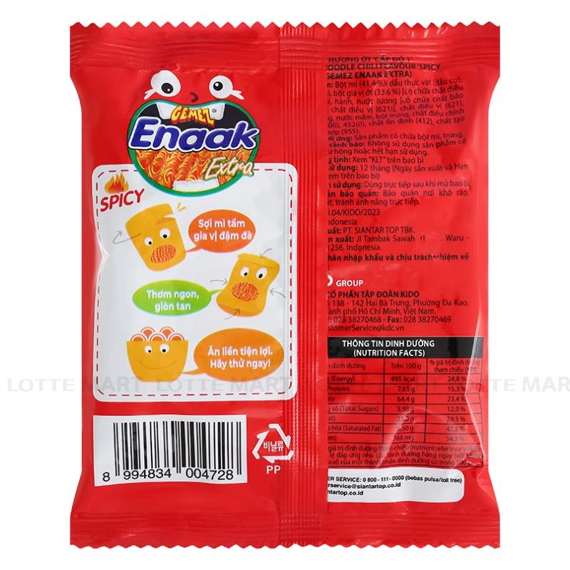 - Snack Mì Enaak Vị Cay với sợi mì mỏng, nhỏ được tẩm ướp gia vị thơm ngon, hấp dẫn, thích hợp là món ăn vặt nhâm nhi trong các buổi tụ tập bạn bè.