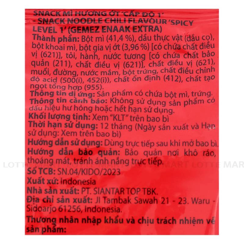 - Snack mì với vị ớt cay cấp độ 1, kích thích vị giác và tạo một cảm giác rất lạ miệng.