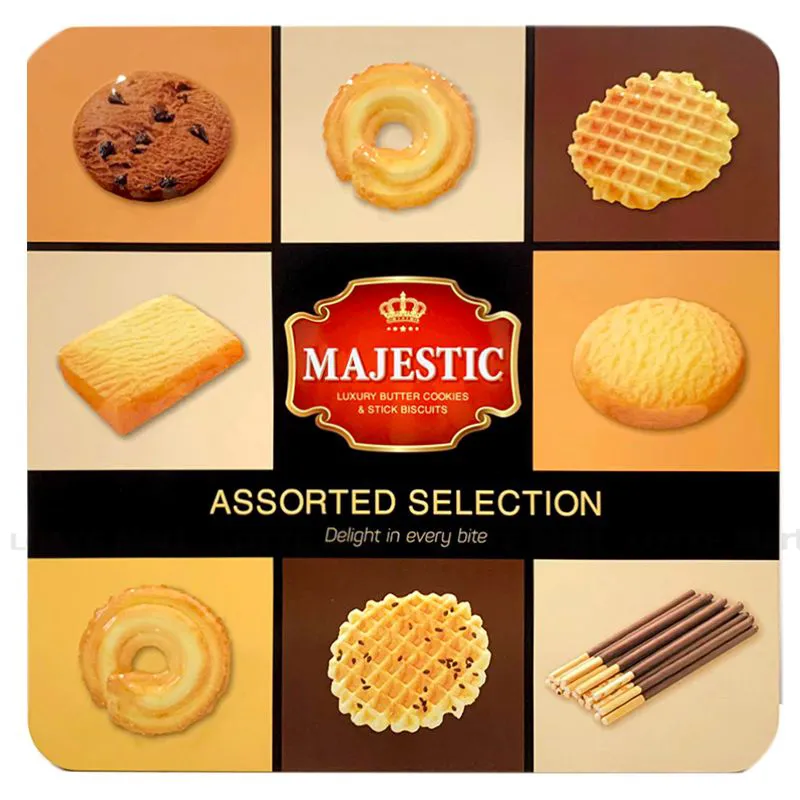 Mang hơi thở của châu Âu hòa quyện cùng với tinh hoa ẩm thực Việt, Majestic Selection – Bánh thập cẩm 398g mang đến cho bạn và gia đình loạt sản phẩm thơm ngon, ngọt dịu, thưởng thức là mê. Chất chứa trong hộp bánh có thiết kế sang trọng, tinh tế, là loạt sản phẩm Richy đủ hình dáng, đủ vị. Đây sẽ là món quà lý tưởng và không thể tuyệt vời hơn cho mỗi gia đình vào dịp lế Tết. Hương vị: bánh cookie, bánh bơ trứng, bánh stick. Với Bánh Thập Cẩm Majestic Selection sẽ mang đến cho bạn những hương vị bánh khác biệt cho cả gia đình cùng lựa chọn – từ bánh quy bơ, bánh bơ trứng, bánh cookies, bánh stick… Những hương vị tuyệt vời gói trọn trong chiếc hộp nhỏ sẽ khiến bạn đi từ bất ngờ này đến bất ngờ khác. Thành phần: Bột lúa mì, bơ, đường, dừa, trứng, nho, sữa bột, muối, bột nở, vani... Sản phẩm có thiết kế dạng hộp thiếc cao cấp, thẩm mĩ, mang phong cách châu Âu sang trọng. Bánh Thập Cẩm Majestic Selection là món quà biếu / tặng người thân bạn bè không thể lịch sự và tuyệt vời hơn. Với Bánh Thập Cẩm Majestic Selection bạn có thể nhàn nhã tận hưởng bữa tiệc trà chiều kiểu Anh ngay tại nhà vào những ngày cuối tuần cùng người thân, hay là món bánh ngon miệng thết khách đến nhà chúc tết. Bánh ngọt dịu, đa dạng các loại phù hợp cho cả người lớn và trẻ nhỏ. Sản xuất trên dây chuyền hiện đại cùng nguồn nguyên liệu đảm bảo chất lượng, Majestic Selection đảm bảo an toàn vệ sinh thực phẩm. Hướng dẫn sử dụng: Sử dụng ngay sau khi mở hộp để đảm bảo chất lượng tốt nhất, tránh để lâu không khí ảnh hưởng đến chất lượng và độ giòn của bánh. Sẽ ngon hơn nếu cho vào ngăn mát 5 phút trước khi ăn. Bảo quản: Nơi khô ráo, thoáng mát, tránh ánh nắng trực tiếp. Hạn sử dụng: 12 tháng kể từ ngày sản xuất. Nơi sản xuất: Việt Nam.