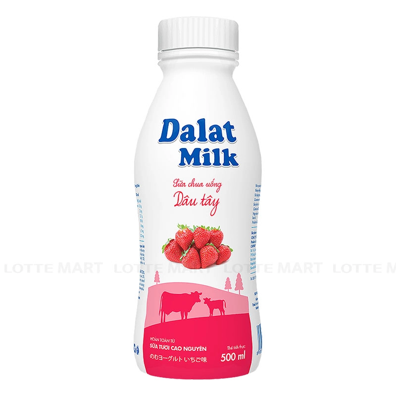 Sữa Chua Uống Dalat Milk Hương Dâu Tây Chai 500ML