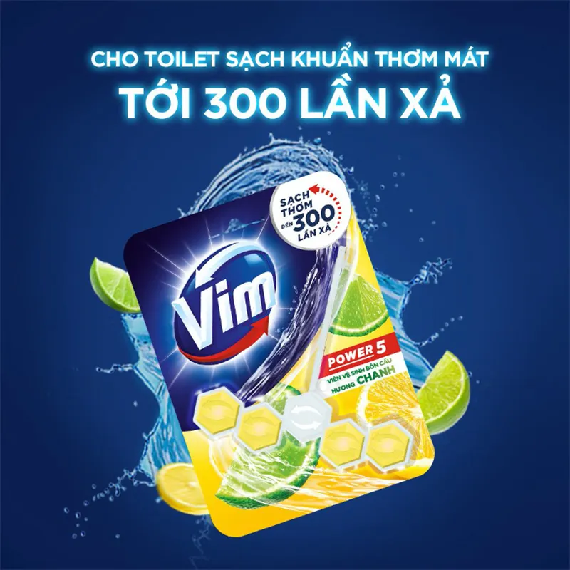 Viên Vệ Sinh Bồn Cầu Vim Power 5 với 5 tác động vượt trội là sản phẩm giữ cho toilet luôn sạch mát ngát hương.